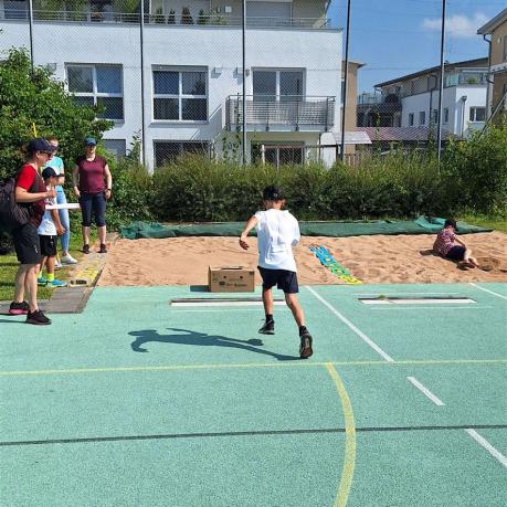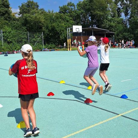 Seit 2 Jahren schon findet für alle 336 Bruckmühler und Göttinger Schulkinder auf dem „grünen Hartplatz“ an der Rathausstraße statt der bisher bekannten Bundesjugendspiele mit dem Zusatz „WettKAMPF“ ein „Gaudi-Sport-Fest“ mit dem Zusatz „WettBEWERB“ in den klassischen Disziplinen „Sprint“, „Wurf“ und „Sprung“ statt. Neu ist die Disziplin „Ausdauer“. Die Mädchen und Buben stellten gerne auf dem an das Schulgelände angrenzenden Spielplatzgelände unter Beweis, wie viele „Runden“ sie in 5 Minuten schafften.