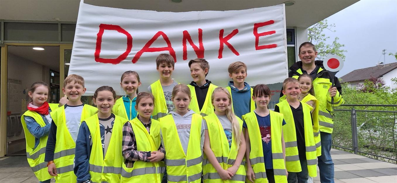 Holnstainer Viertklässlerinnen und Viertklässler, Eltern-Lotsen, Schulleitung sowie die Polizei waren wieder eine Woche lang aktiv, um allen Nutzern die richtige Verkehrsführung auf dem Bussi & Pfiadi-Platz vor der Holnstainer Schule in Erinnerung zu rufen. Und das ist gelungen! Die meisten Eltern waren vorbildlich und zeigten volle Unterstützung.
