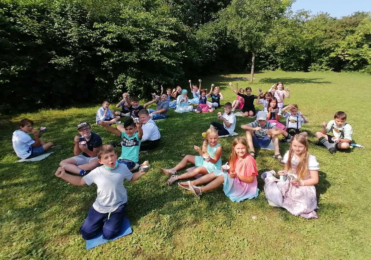„Hm, guad!“ So war es in den Klassen der Schulhäuser Bruckmühl und Götting zu hören. Mit Genuss schleckten die Holnstainer Schulkinder echt italienisches Eis. Diese „coole Schulstunde“ spendierte die Bürgermeister Heinritzi Jugendstiftung nach einem für alle sehr „uncoolen“ Schuljahr. „Dieses blöde Corona! Ja, wir waren manchmal wirklich in großer Not“, so brachte die Schülerin Johanna den Förderzweck der Stiftung auf den Punkt. „Ich bin sehr dankbar, dass am Ende dieses anstrengenden Schuljahres mit dieser Aktion unseren Schulkindern ein Erlebnis geschenkt wurde, das zum einen gemeinschaftsfördernd war und zum anderen auch zeigt, dass die enormen Leistungen unserer Schulkinder in diesem von der Pandemie geprägten Jahres gesehen und mit dieser Eisspende ein wenig versüßt wurden. “, so die Schulleiterin Birgit Splett.